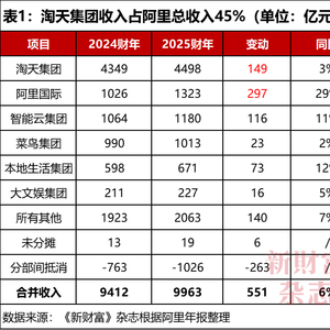 在2025年年报中,阿里巴巴也据此分列了各板块的收入(表1)。