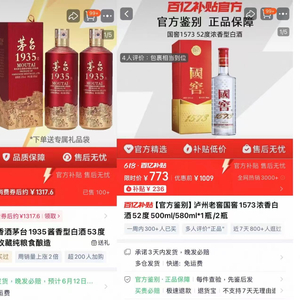 酒类在618期间动销顺畅的原因与低价存在关系。界面新闻记者通过各电商平台了解到,618期间茅台1935在多个平台官方旗舰店的单瓶销售价格不足800元,国窖1573百亿补贴价低至773元/瓶。对于名酒大单品来说,这样的价格很有竞争力。此前消费者通过i茅台APP申购茅台1935的价格为1188元/瓶。
