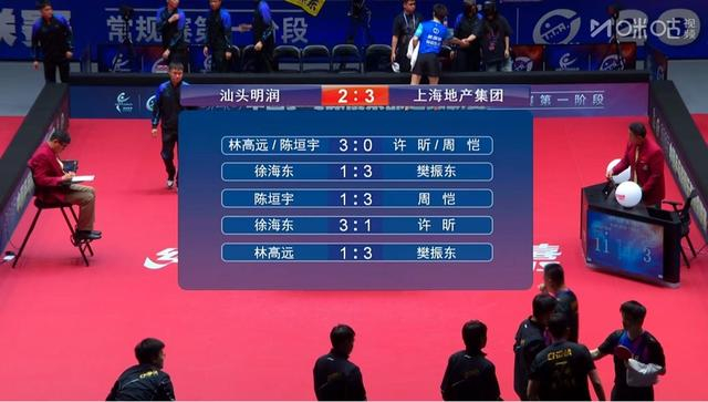 4个多小时后,樊振东今晚再次扮演逆转之王的角色。在上海地产集团队同汕头明润的比赛中,当双方大比分战成2比2平,决胜盘樊振东大战林高远的比赛,将现场气氛推向了高潮。