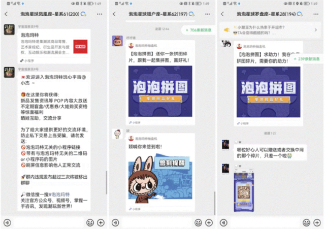 泡泡玛特的商业模式在很大程度上依赖活跃的粉丝社群和成熟的私域流量运营。从2021年起,公司成立专门的社群运营部门,并在微信生态内构建了800余个官方社群,成员总数突破10万人。数据显示,泡泡玛特社群内讨论热度遥遥领先同行:某泡泡玛特社群平均每日消息高达128条,其中17%的互动内容与盲盒猜奖、小程序活动等自家产品功能直接相关。这种以用户自发分享为主导的社群氛围,不仅带动了线上流量裂变,也使微信盲盒机渠道的营收规模与其他线上渠道相当。