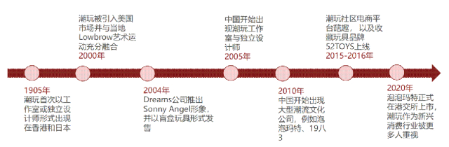 中国潮玩起步虽晚,但发展极为迅猛,未来或将成为全球最大市场。2005年国内出现首批设计师玩具工作室,金融危机后行业沉寂,2010年起才出现真正的潮玩公司如泡泡玛特、19八3等。2016年盲盒玩法流行后,泡泡玛特迅速带动市场扩张;自2017年各种潮玩展会兴起以来,尤其是2021年后资本持续加码,行业进入高速增长期。
