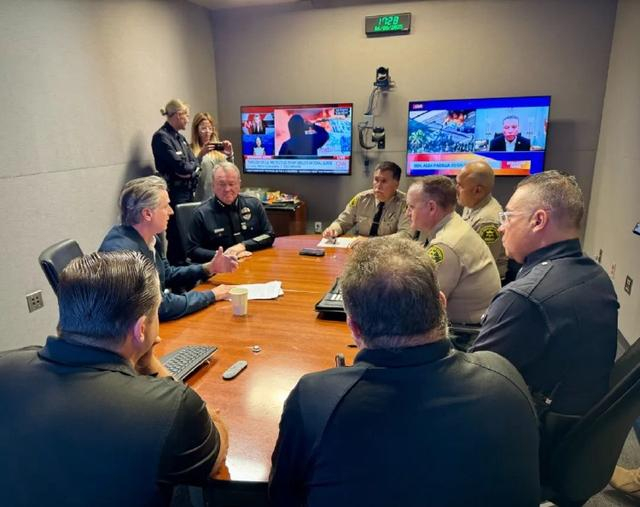 当地时间6月9日,纽森召开紧急会议,与加州警方商议如何应对特朗普的“率兵入侵”。