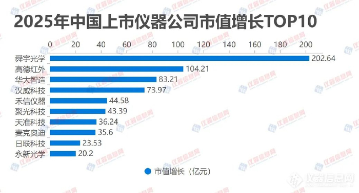 2025年是中国“十四五”规划收官和“十五五”规划开启的关键一年。外部环境复杂多变,包括美国的关税政策、地缘政治风险以及美联储的货币政策调整,叠加中国经济的结构性改革,共同影响着资本市场。在此背景下,仪器行业整体市值出现变动。