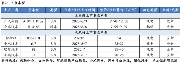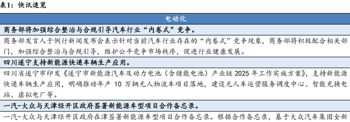 行业动态:行业要闻,一是蔚来汽车2025-2026年将进军七大欧洲市场;二是比亚迪与小桔充电、新电途共建兆瓦闪充桩。上市车型,广汽AION Y Plus和奇瑞风云A8等车型上市。