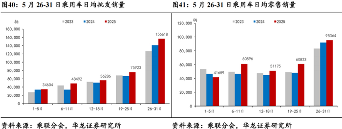 据乘联分会数据,5月26-31日,乘用车市场零售销量完成57.2万辆,同比+6%,较上月同期+12%;乘用车批发销量完成94.0万辆,同比+10%,较上月同期+18%。
