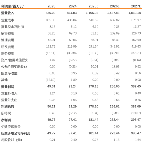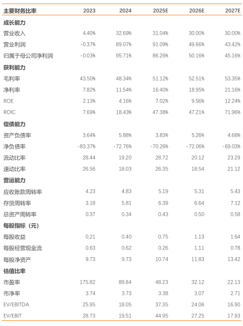 公司该板块预计收入25/26/27年分别达9.94/12.83/16.55亿元,毛利率分别为48.23%/48.61%/49.32%。