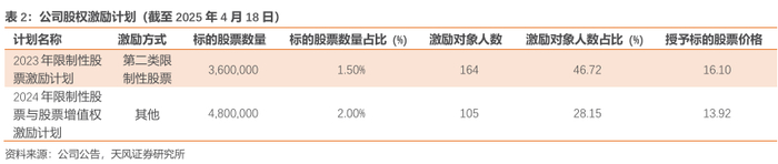 公司股权激励计划持续推进。公司分别在2023年和2024年实行两期股权激励计划,行权价分别为16.10和13.92元。该计划有效绑定核心团队利益,激发员工积极性,有助于公司长期稳定发展。