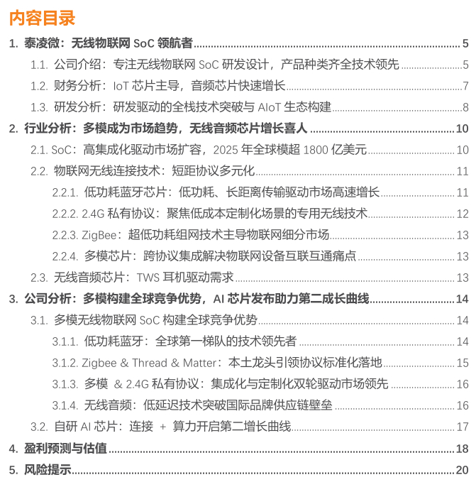 1. 泰凌微:无线物联网SoC领航者