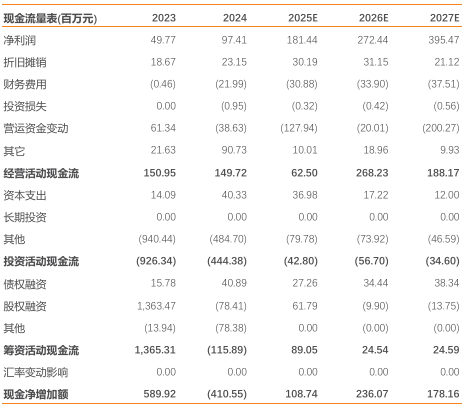 音频芯片:音频芯片是公司首个端侧AI量产项目,成功应用于谷歌Pixel Bud Pro 2等高端智能耳机,同时音频芯片还受益于现有客户订货量的增长和 Sony、蜂语、猛玛等新品牌客户的拓展和量产,2024年公司音频收入大幅增长。预计收入25/26/27年分别达1.06/1.48/2.08亿元,毛利率分别为59.34%/58.98%/59.02%。