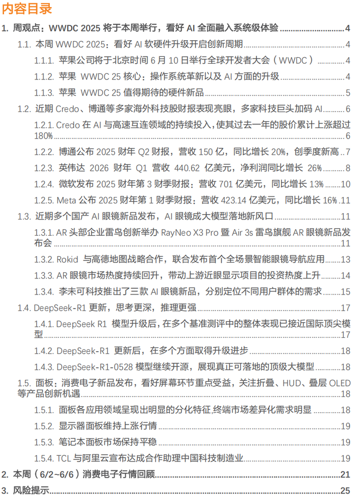 1. 周观点:WWDC 2025将于本周举行,看好AI全面融入系统级体验
