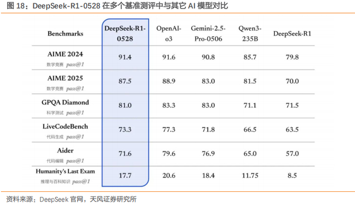 1.4.1. DeepSeek R1 模型升级后,在多个基准测评中的整体表现已接近国际顶尖模型