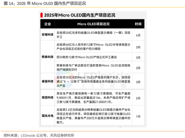 Micro OLED技术在2025年迎来进一步的发展,并带动上游核心器件项目的投资也进一步加大。随着未来终端市场对于Micro OLED认可度与需求度的持续上升,Micro OLED产业链也将进一步扩大发展,往更成熟的阶段前进。奕瑞科技此次大手笔的投入建设硅基OLED(Micro OLED)微显示背板项目,不仅仅是因为下游视涯科技所带来的稳定需求,更是看好近年多个Micro OLED微显示项目涌现所带来的产能扩展,将推动未来Micro OLED微显示背板需求的持续上升。另有多个国产企业在今年推动Micro OLED项目的落地与建设,进一步扩充国产Micro OLED的产能,其中包括宏禧科技、熙泰科技、睿显科技等。从终端需求来看,对于Micro OLED微显示屏的需求也在不断提升。在中短期时间内,Micro OLED仍在AR眼镜应用占有重要一席之地。除此之外,Micro OLED应用范畴还包括安防监控、数码相机取景器、军事瞄准设备、医疗设备、工业检测、车载显示器等领域,因此Micro OLED未来应用发展仍值得期待。