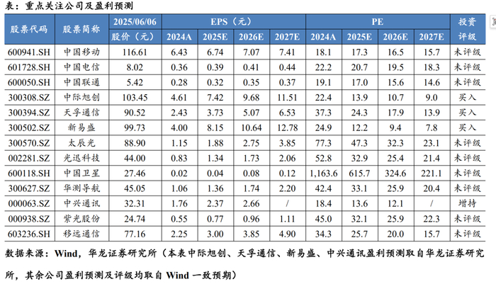 (1)运营商:中国移动(600941.SH)、中国联通(600050.SH)、中国电信(601728.SH);