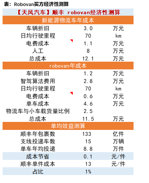 Robovan卖方经济性测算,短期靠算法,远期平台化