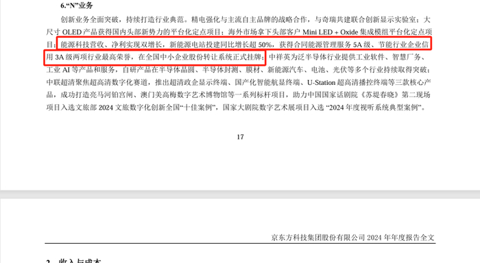 有意思的是,在刚刚京东方A公开披露的2024年年报中,其还明确称子公司“能源科技营收、净利实现双增长”。