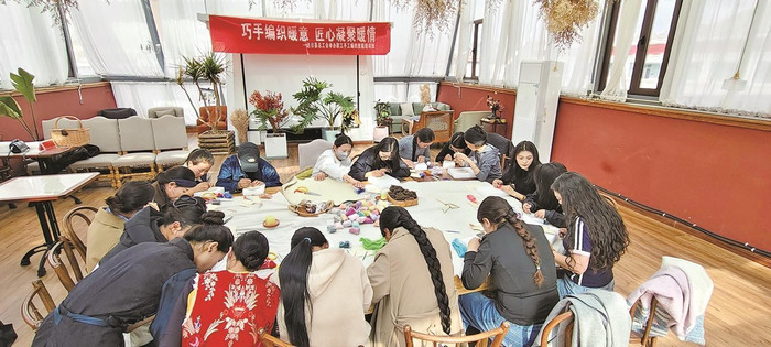 在老师的指导下,叶昂手里的羊毛毡上很快织出细密的纹路。她举起手中的半成品说:“以前只会在家织些简单的围巾,现在能跟着老师学编带花纹的手工艺品,说不定以后能拿到集市上卖。”一根牦牛绒线,正悄然串联起文化传承与就业增收的双重希望。