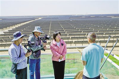 走进巴彦淖尔市磴口县160万千瓦光储+生态治理项目区,一排排光伏板如蓝海般延展于乌兰布和沙漠腹地,与板下的梭梭、四翅滨藜等沙生植物共同构筑起绿色屏障。磴口县发展和改革委员会副主任罗彪志介绍,该项目全面推广复制“板上发电、板下种植”的“光伏+生态治理”模式,通过抬高光伏阵列高度、拉大阵列间距,为生态治理和机械化作业留足空间,实现光伏产业和生态治理有机结合。