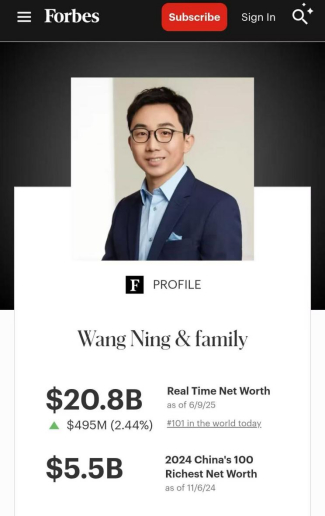 而若以王宁家族目前208亿美元的身家粗略比较,其在2024年的国内富豪榜中的排名有望排进前10。