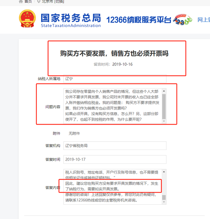 根据税务局的回复来看,建议在购买方没有要求开具发票的情况下,发生了纳税行为,需要如实开具发票。