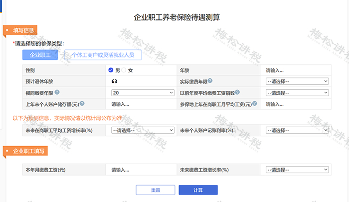 另外,我们还需要假设几个参数,工资增长率和个人账户记账利率,我们都填入3%,方便计算器计算。(这个是预估数据,实际情况可能会有差别)