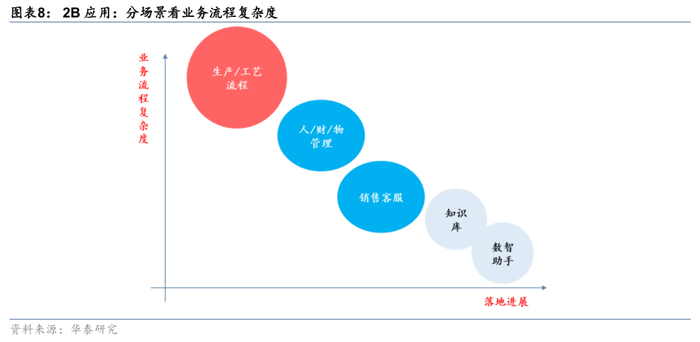在ToB垂直场景中,业务流程相对简单、对模型幻觉有一定容忍度的垂直场景落地更快,如办公、人力资源、营销、销售、智能客服等场景,AI商业化进展相对更快;而投资顾问、财务管理、AI辅助诊断等严肃场景,对模型幻觉率容忍度较低,此部分领域的Agent大规模广泛落地还有赖于大模型能力的进一步提升,但中长期来看,这些领域具有更为广阔的市场空间。