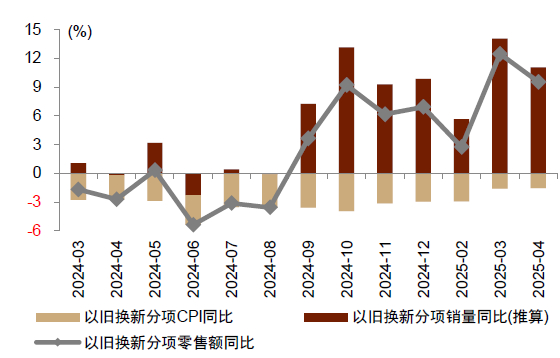 注:以旧换新分项的销量增速用名义零售额增速减去对应的CPI增速得到