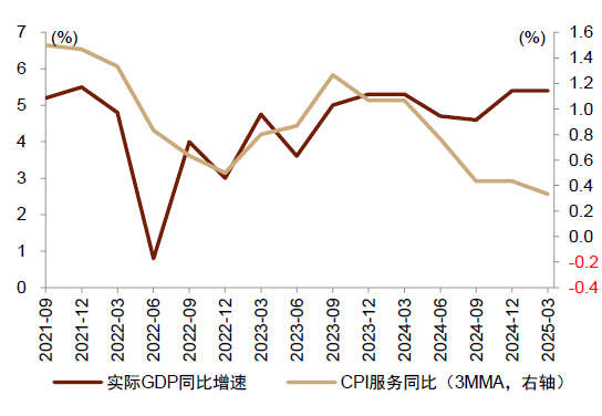 图表3:GDP增速与服务业CPI同比分化加剧