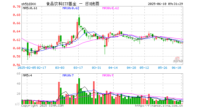6月10日,食品饮料ETF基金(516900)开盘跌0.33%,报0.610元。食品饮料ETF基金(516900)重仓股方面,贵州茅台开盘跌0.01%,五粮液跌0.13%,伊利股份涨0.38%,山西汾酒涨0.00%,泸州老窖跌0.01%,海天味业跌0.07%,东鹏饮料跌0.93%,洋河股份涨0.00%,今世缘涨0.00%,双汇发展涨0.04%。