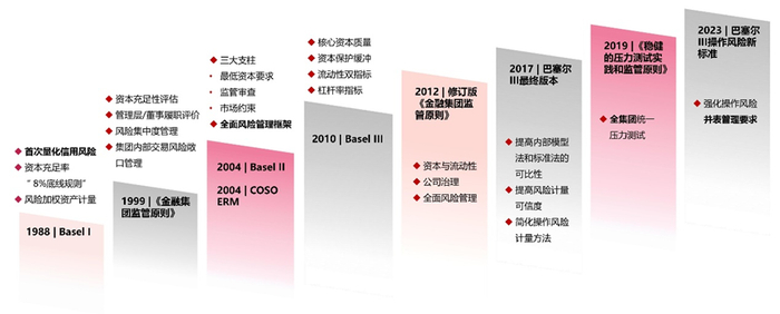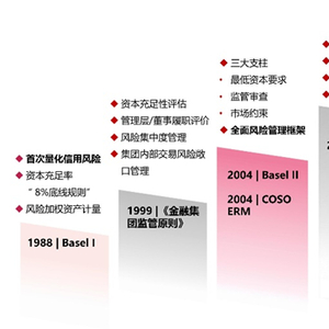 【1988年】巴塞尔I:首次提出资本充足率要求(8%资本充足率),强调风险加权资产计量。