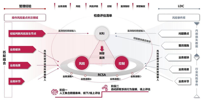 操作风险管理需深化RCSA风险自评估、KRI关键指标与LDC损失数据收集三大工具的协同应用,强化外包服务商准入评估、业务连续性管理、员工行为管理等专项管控,通过搭建贯通合规、风险管理以及内部控制数据的操作风险集市,实现操作风险事件识别与报送口径的全覆盖,并搭建微观行为层面的操作风险管理监控新体系。