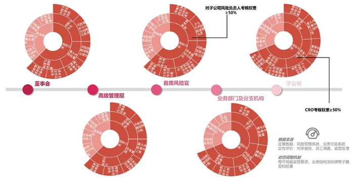 完善的考核机制是构建穿透式风险管理体系的基础,我们建议证券公司构建覆盖全组织层级的穿透式风险管理考核体系,通过差异化考核指标的设计与责任传导机制,强化董事会战略引领、管理层执行管控、首席风险官专业督导、业务单元属地负责、子公司垂直落地的协同治理效能。