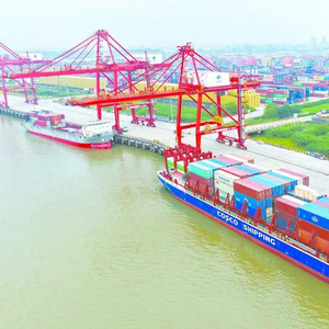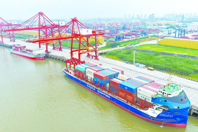 海关总署9日发布数据显示,今年前5个月我国货物贸易进出口同比增长2.5%。图为9日当天的南京港龙潭港区。 (视觉中国)
