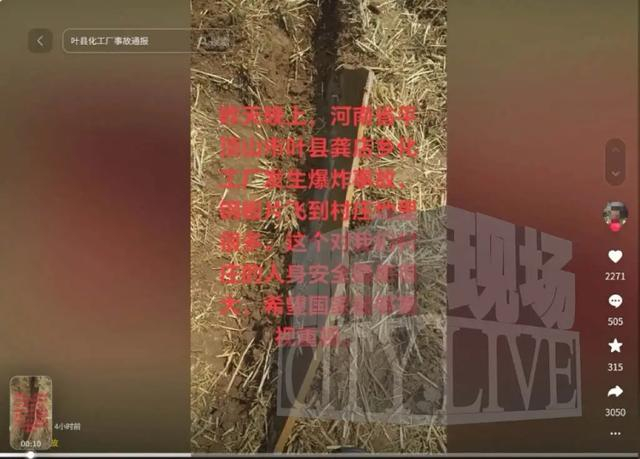 还有一些网友在社交平台发布视频称,工厂发生爆炸事故后,产生的钢板片飞到了附近村庄的地里。