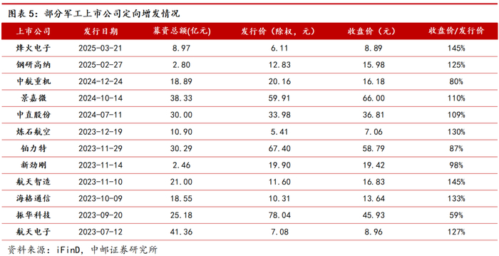2)蕴含更大弹性的新技术、新产品、新市场:包括航天智造、航天南湖、国睿科技、中科星图、长盈通、华秦科技、晶品特装、上大股份、航天彩虹、广东宏大、臻镭科技、铖昌科技、海格通信、纳睿雷达、润贝航科、联创光电、国光电气等。