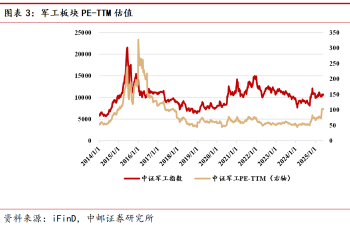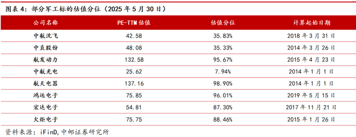 2.3 军工板块及重点标的估值水平
