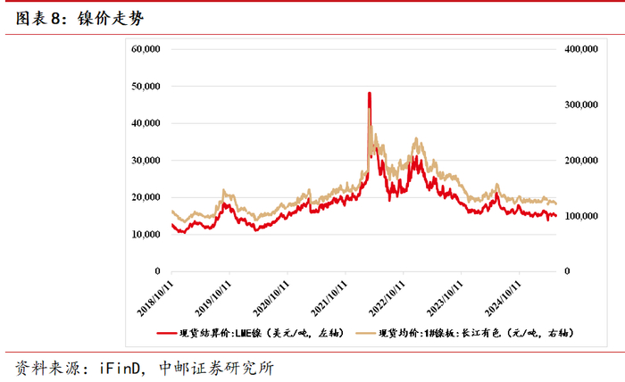 镍价跟踪:5月30日,伦敦金属交易所金属镍现货结算价格15150美元/吨,较上周末价格下跌0.36%;长江有色市场镍板现货均价122500元/吨,较上周末价格下跌1.25%。