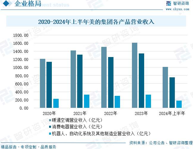 美的集团股份有限公司是一家覆盖智能家居、楼宇科技,工业技术、机器人与自动化和数字化创新业务五大业务板块为一体的全球化科技集团。公司旗下拥有美的、小天鹅、华凌、COLMO、库卡、威灵、合康、高创、万东和菱王等多个品牌。智能家电方面,美的结合自有产品及生态合作产品,提供“智能家电+智能家居”深度融合的差异化全屋智能解决方案;推出智慧中控、家庭智慧主机等核心自研终端,深度融合家电与智能家居系统。数据显示,2024年上半年,暖通空调营业收入同比增长10.32%至1015亿元;消费电器营业收入同比增长10.28%至751.38亿元;机器人、自动化系统及其他制造业营业收入同比增长12.69%至183.01亿元。