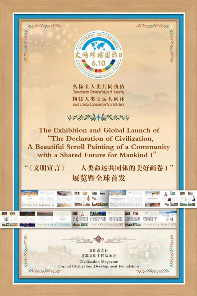 2025年6月10日“文明对话国际日”,中国通过在纽约联合国总部和日内瓦、维也纳、内罗毕、曼谷、巴黎、海牙等地同时发布“《文明宣言》——人类命运共同体的美好画卷I”暨举办“文明对话国际日:文明长卷I主题展览”。
