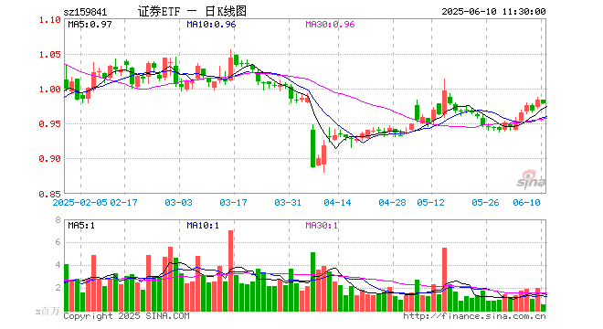证券ETF(159841)跌0.51%,半日成交额5136.08万元