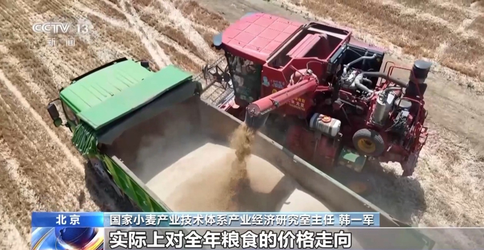国家小麦产业技术体系产业经济研究室主任 韩一军: 夏粮的丰收,包括它的价格走向,实际上对全年粮食的价格走向有一个基础性作用。刚刚上市的新麦,它的价格是稳中有升的态势,为后续全年的粮食价格走势开了个好头。