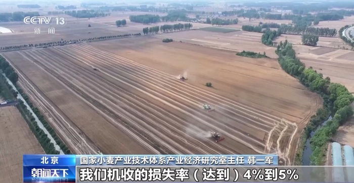 国家小麦产业技术体系产业经济研究室主任 韩一军: 在七八年前,甚至十年前左右,我们机收的损失率达到4%到5%,现在全国普遍控制在2%以下。