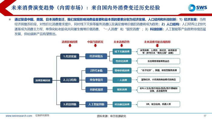 2025年首要工作任务在于:提振国内消费。通过复盘国际消费变迁,我们发现影响消费最重要和最本质的要素分别为经济发展、人口结构和科技创新:经济弱复苏阶段,消费往往呈现出追求性价比、追求情绪价值特征等。入境和消费便利化等一系列政策措施吸引海外网红“中国行”,在经济和文化层面进一步增强中国吸引力,2025年前4个月海外旅客入境已恢复至2019年高位。