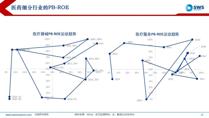 当前PB-ROE处于第三象限双低区域的行业还有医药、国防军工、电力设备、银行和地产产业链。
