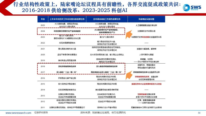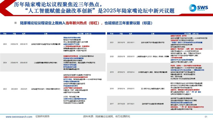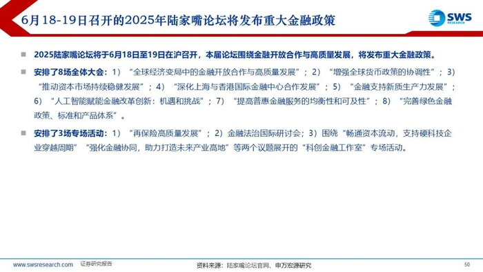 6月18-19日召开的2025年陆家嘴论坛将发布重大金融政策。行业结构性政策上,陆家嘴论坛议程具有前瞻性,各界交流促成政策共识:2016-2018年的供给侧改革、2023-2025年的科创AI。“人工智能赋能金融改革创新”是2025年陆家嘴论坛中新兴议题。2025年新兴议题与2013年共性:新产业对金融的重塑(互联网+ VS 人工智能+),2013年计算机、传媒是下半年主线,涨幅行业前三。