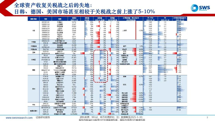 2025年4月以来全球贸易关税冲突引发全球资本市场大幅波动,截至5月底日韩、德国、美国市场甚至相较于关税战之前上涨了5-10%,但中国资产价格仍微跌。行业机会方面,A+H两地市场的风险偏好降低,红利资产相对占优,消费、医药、银行涨幅居前,TMT板块垫底。
