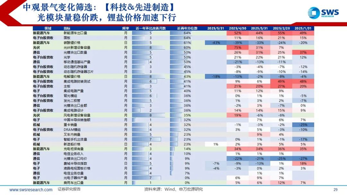 日历效应:6月电子、7月军工绝对收益概率较高,6月家电、汽车、电子,7月化工、军工、农业超额收益概率较高。二级行业中消费电子、白酒绝对和相对收益概率均靠前,计算机软件相对收益概率达到80%。