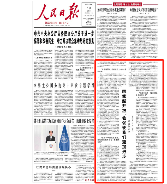 6月10日出版的《人民日报》首页,刊登了任正非的采访文章《国家越开放,会促使我们更加进步