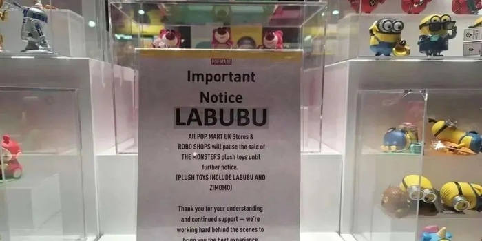 泡泡玛特伦敦唐人街店内的“拉布布”下架提示牌