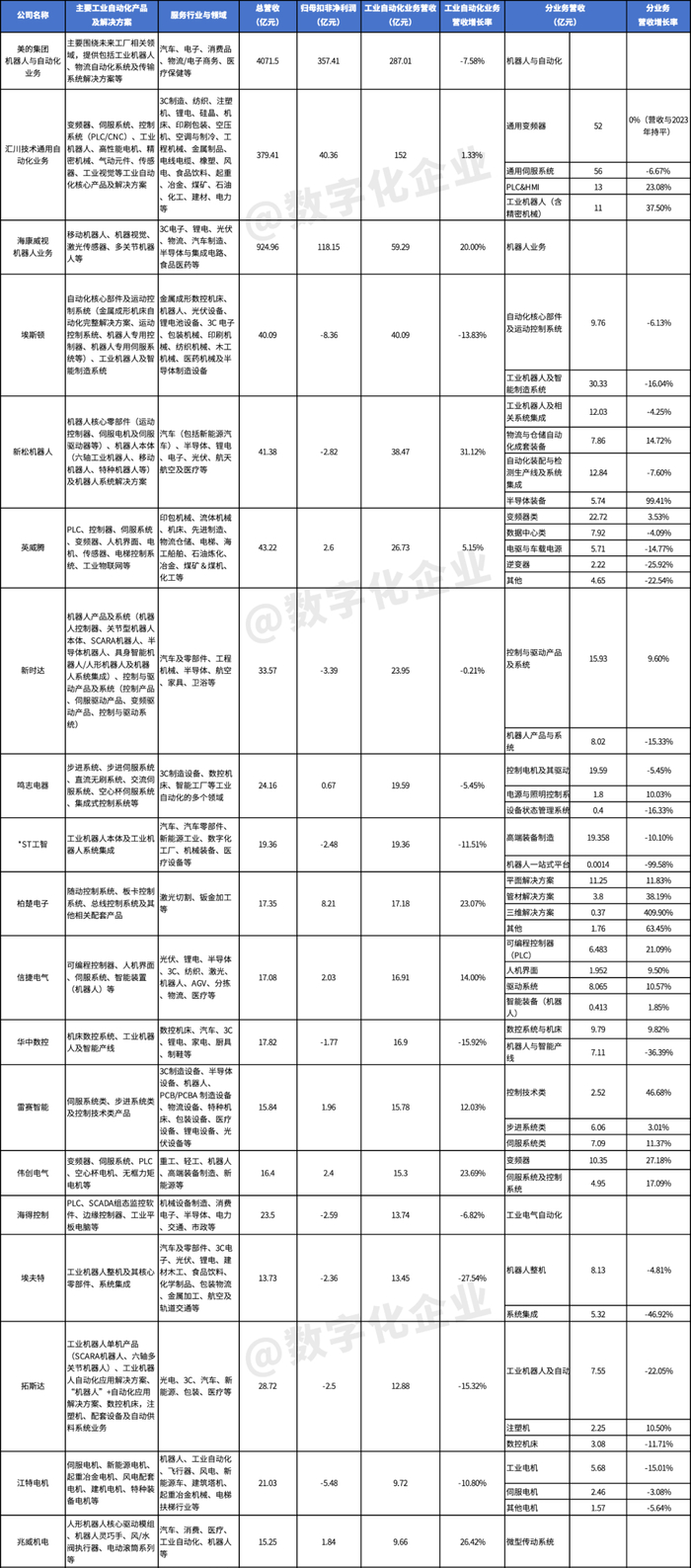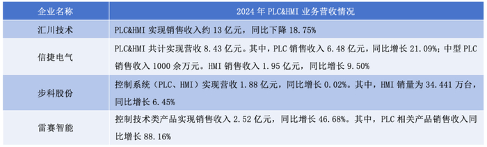 表3 工厂自动化领域上市企业2024年度工业自动化业务营收情况