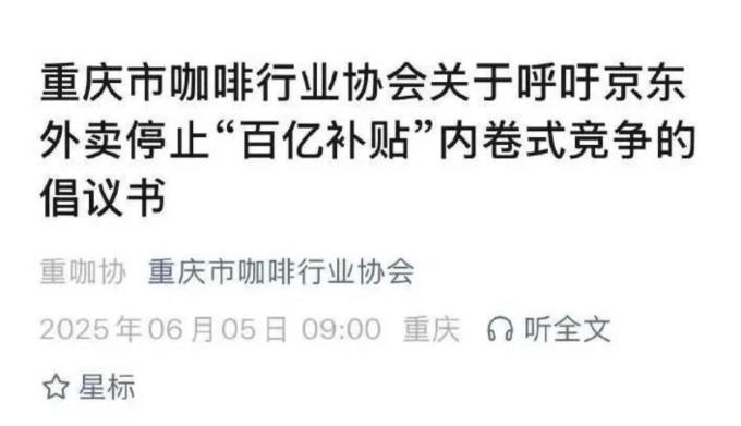对此,重庆市咖啡协会于6月5日发布倡议书,呼吁停止“百亿补贴”引发的内卷式竞争。倡议指出,2025年一季度以来,平台持续的补贴大战已导致咖啡市场价格断崖式下跌,严重威胁行业长期健康发展。巴浪森林咖啡、雾光商务咖啡等多家本地独立品牌联署支持该倡议。